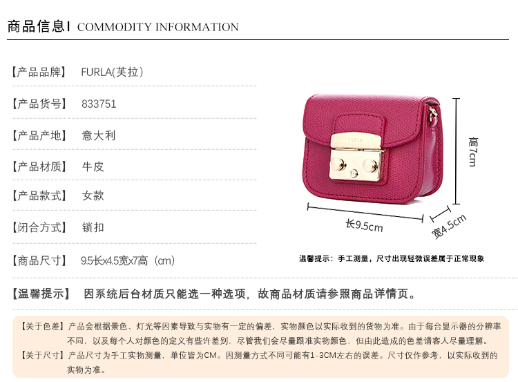 商品名称:FURLA 芙拉 新品女款迷你手提包小方包833751-天猫秒杀