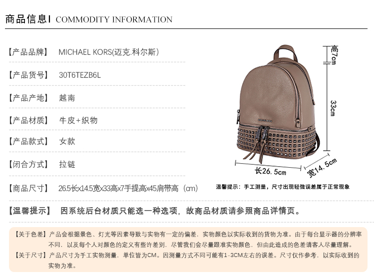 商品名称:迈克.科尔斯 新品女牛皮背包30T6TEZB6L-瑕疵