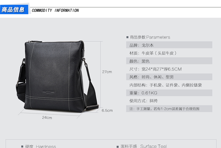 戈尔本 时尚休闲系列男背包单肩包男士全牛皮斜挎包单肩斜挎包1610002501