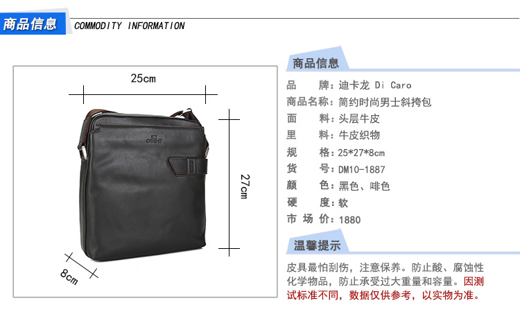 迪卡龙/DI Caro 简约时尚男士斜挎包 DM10-1887