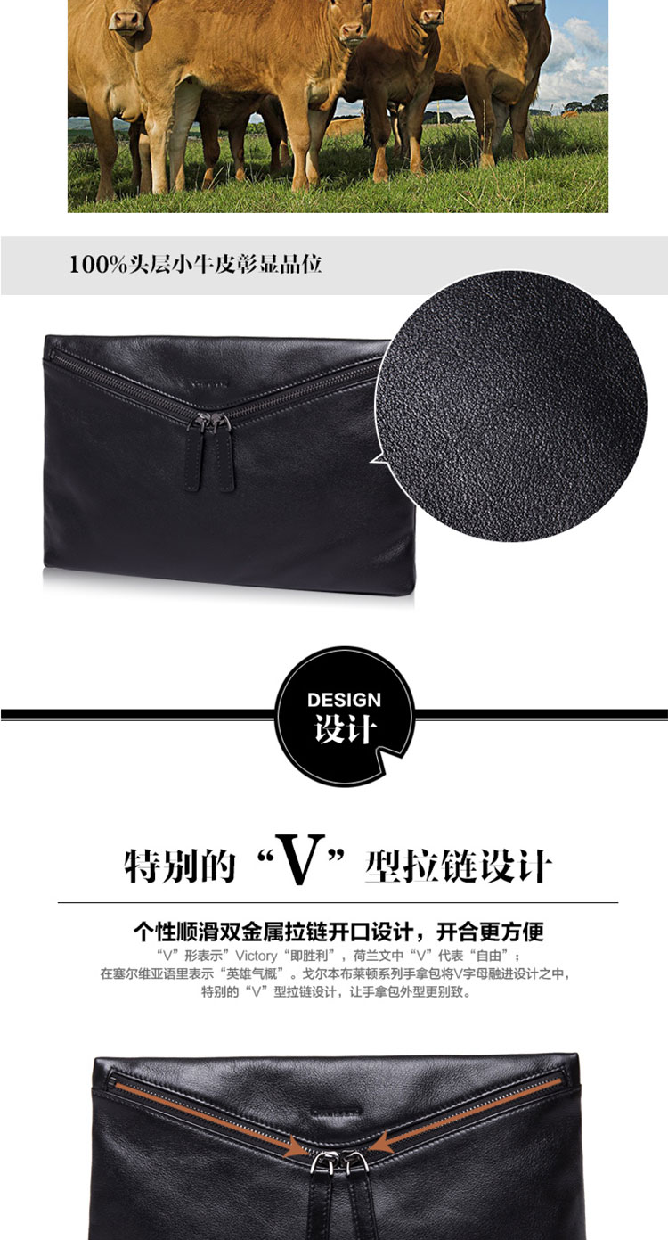 商品名称:布莱顿系列奢华进口头层小牛皮手拿包15050156