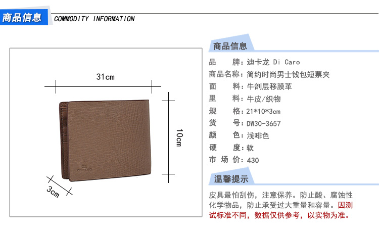 迪卡龙/DI Caro 简约时尚男士钱包短票夹DW30-3657