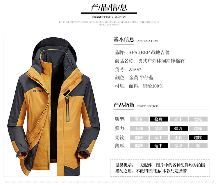 AFS JEEP/战地吉普 男士户外休闲冲锋棉衣 z1557