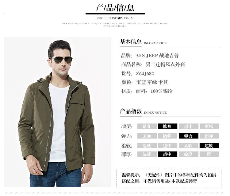 AFS JEEP/战地吉普 男士风衣夹克外套 Z64J682