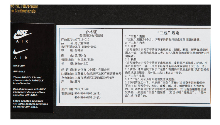 商品名称:NIKE AIR JORDAN FIRST CLASS 男子运动休闲鞋 AJ7312 010 黑/黑/白