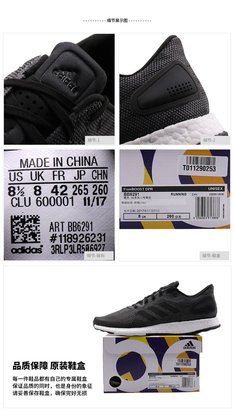 商品名称:adidas阿迪达斯 2018新款 男鞋Pureboost DPR升级版缓震耐磨运动休闲跑步鞋BB6291
