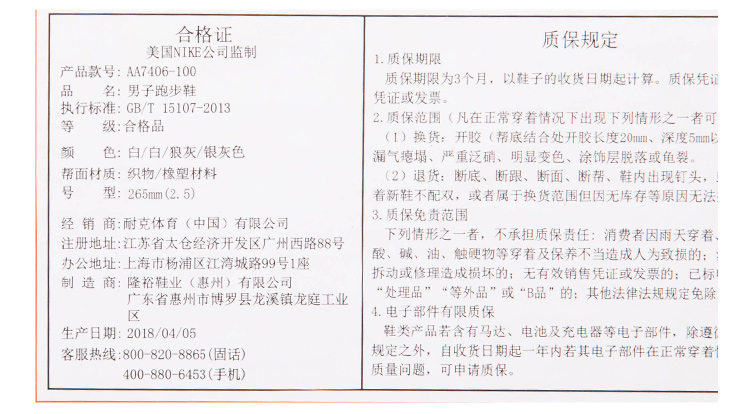 4) 如果成套商品中有部分商品存在质量问题,在办理退换货时,必须提供成套商品;