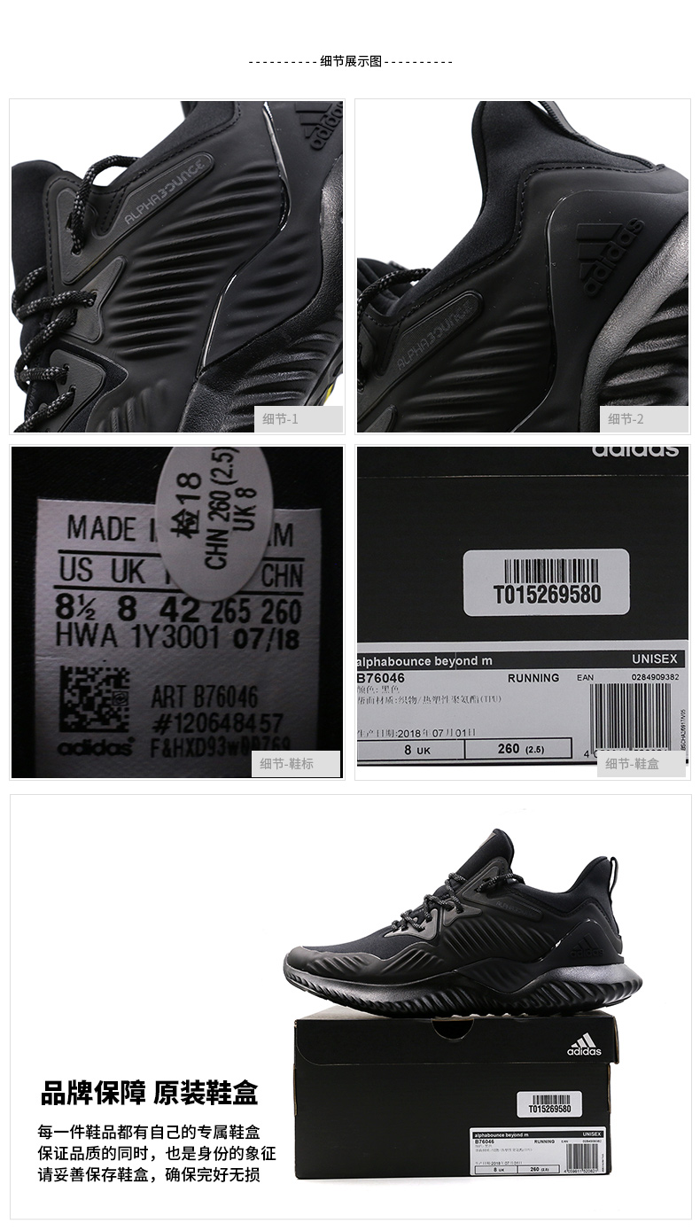 商品名称:adidas阿迪达斯 男鞋2018秋季新款 alphabounce阿尔法小椰子运动鞋缓震耐磨透气跑步鞋B76046