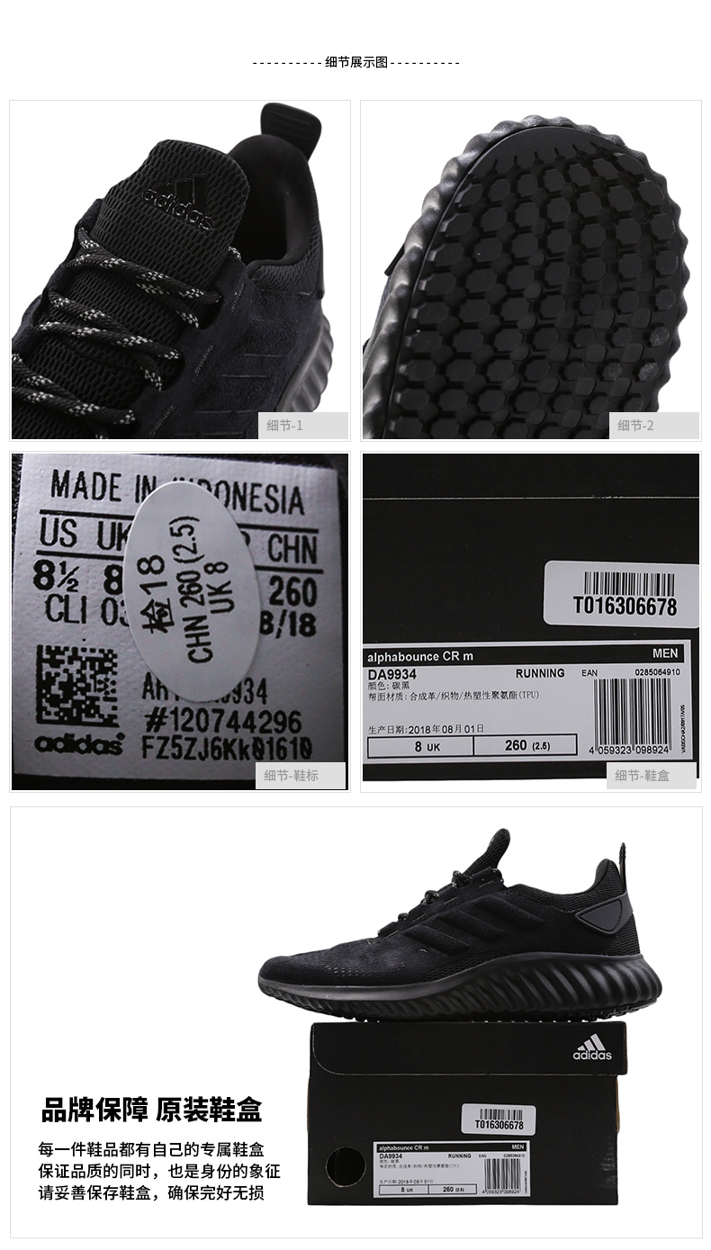 adidas阿迪达斯 男鞋2018秋冬季新款bounce阿尔法小椰子运动鞋休闲跑步鞋DA9934