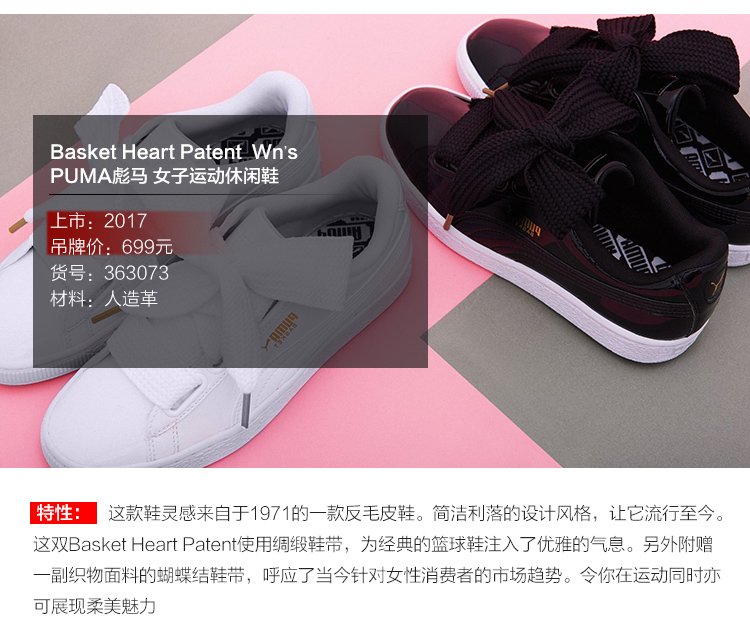 商品名称:PUMA Basket Heart Patent女子休闲鞋 蝴蝶结板鞋363073