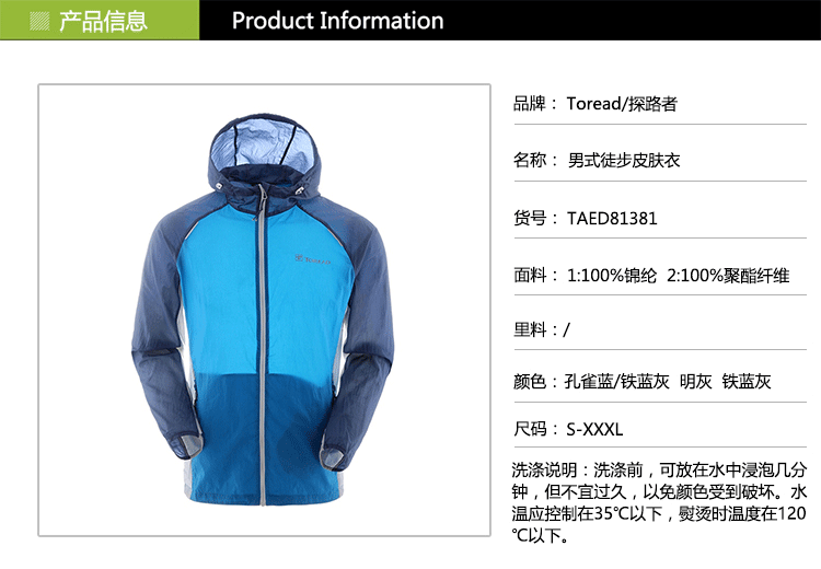 [支持深圳自提] TOREAD/探路者 男式超薄透气皮肤衣 TAED81381