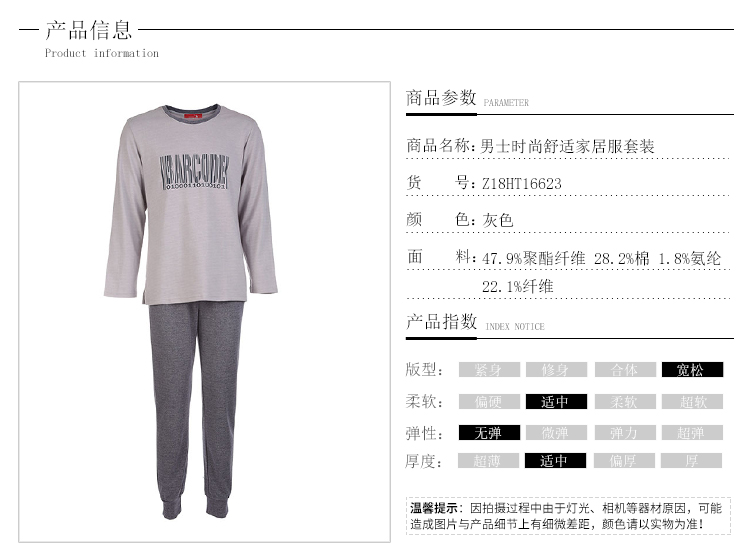 商品名称:男士时尚舒适家居服套装 Z18HT1/6623